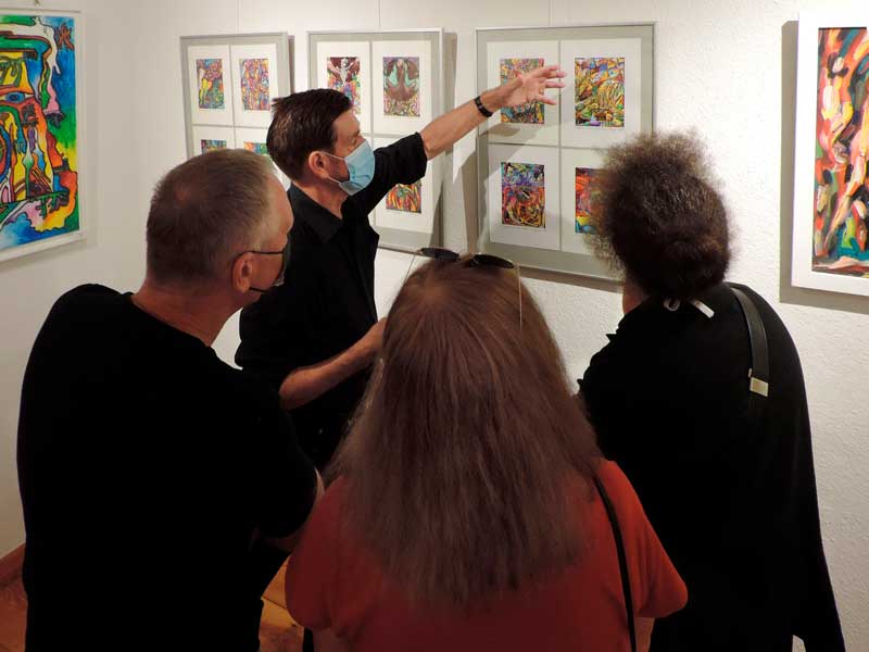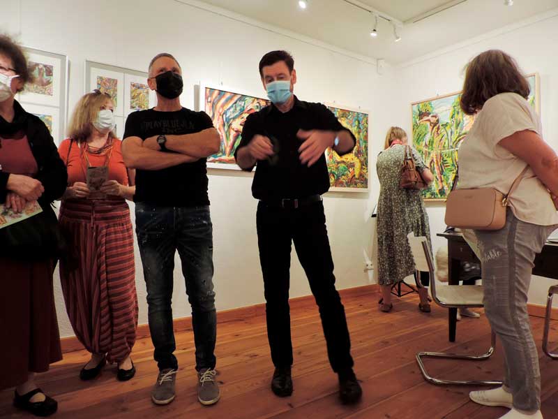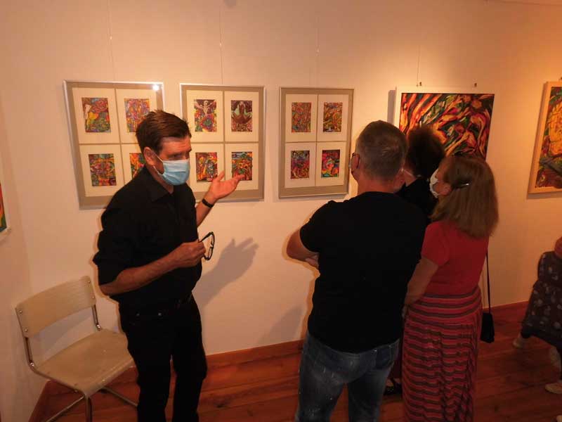 Die Pausen, welche derartige offizielle Veranstaltungen in unsere kreative Arbeit rissen, füllte Werner ungeheuer emsig mit Kritzeleien, welche später die Grundlage seiner Grafiken bildeten. Nur er weiß, welche Informationen und Emotionen hier einflossen. Das Genre Suchbild mit lustvoll versteckten Botschaften war entstanden.