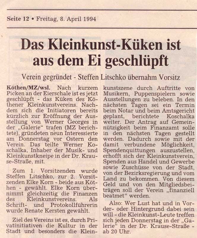 Ausstellung Galerie-Kneipe in Köthen – 1994