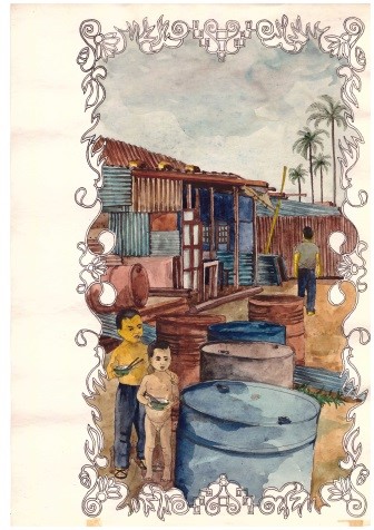 Nach dem Abitur verbüßte ich 18 Monate meinen Wehrdienst. Meine künstlerischen Ambitionen beschränkten sich in dieser Zeit auf die „künstlerische“ Ausgestaltung des Traditionskabinetts unseres Bataillons. Nebenbei fertigte ich Zeichnungen meines damaligen Lebensumfeldes.