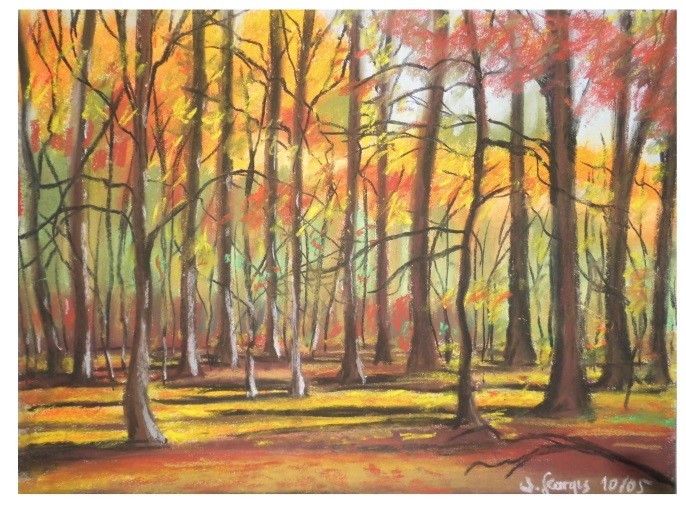 Verstärkt wandte ich mich der Pleinair-Malerei zu. Ich nutzte jede sich bietende Möglichkeit, um mit Bleistift, Pinsel oder Pastell- oder Ölkreide meine Eindrücke der betrachteten Landschaft aufs Papier oder die Leinwand zu bringen. Die so entstandenen Bilder sind auch alle geprägt von meiner Stimmung. Es sind zwar alles fast scheinbar realistisch gemalte oder gezeichnete Bilder – sie zeigen aber nie das, was die Natur mir zeigte, sondern immer nur das, was ich sah, was ich fühlte und was ich nur so malen konnte. Das Gleiche trifft auch auf die Farbgebung meiner Bilder zu.
