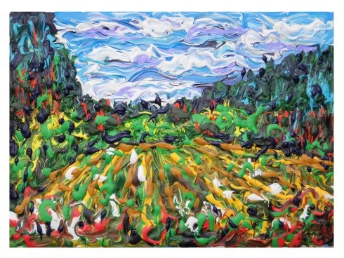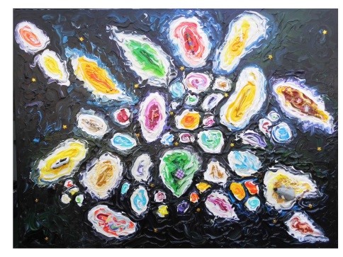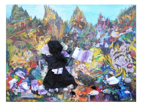 Ich versuche auch ständig, etwas Neues auszuprobieren. So habe ich versucht, meine Malerei plastischer werden zu lassen. Anfangs versuchte ich es, indem ich die Farbe in dicken Strängen auf die Leinwand übertrug. Später versuchte ich, die dreidimensionale Wirkung durch plastische Objekte zu steigern.